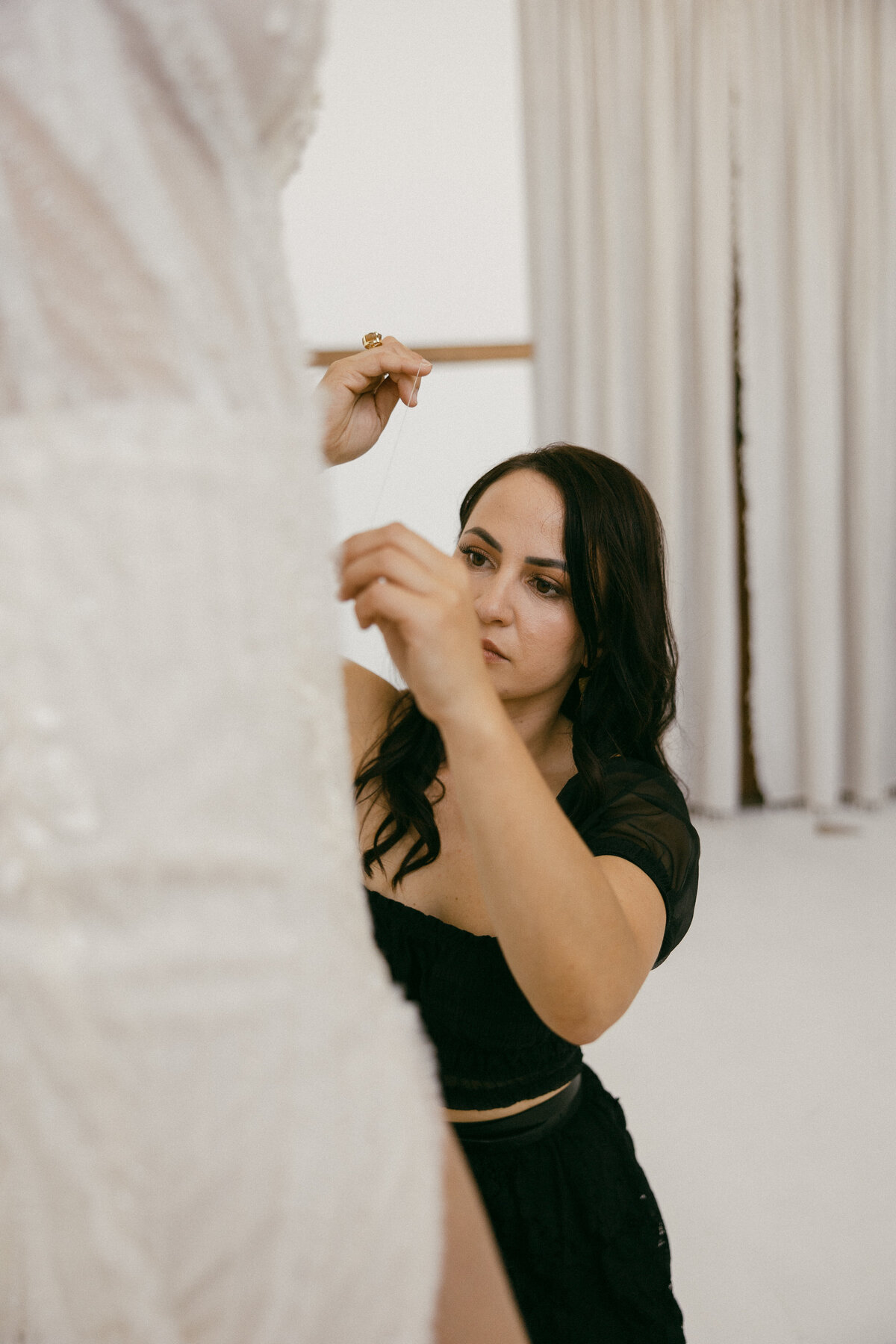 'Ivonn was absolutely amazing to deal with. I did not give her much of a description to work with, just that I wanted something that would suit my figure and look good in! I left it in her hands to do the rest and she went above and beyond to design and create a gown that was so stunning! Her attention to detail is unreal. Her bead work and little touches were so stunning! This whole experience of a couture bridal dress was the best part of the wedding planning for me! I was so excited for my fittings and Ivonn would make small changes each time until it was perfect. No job was too hard for her, she was always calm and professional and made me feel at ease about the whole situation. I can not recommend her enough!! To this day I still have my family , friends and wedding guests and vendors rave about my wedding gown! They were in absolute awe of the detail work and how stunning it was. I still can't believe I was lucky enough to have Ivonn create my wedding dress. I never imagined I would of had a dress so beautiful. I'm so grateful for Ivonn, she is so skilled and capable of anything".